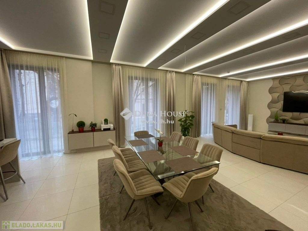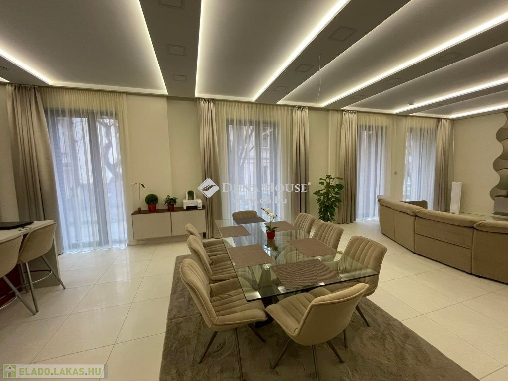Szeged belvárosában, luxus lakás ELADÓ!Szeged belvárosában kínálok megvételre egy 2022-ben teljes felújításon átesett LUXUS ingatlant.A lakás belső két szintes. A magasföldszinten található a lakótér, mely exkluzív kivitelezésben készült. Három szoba, nappali+étkező+konyha, kettő fürdőszoba, közlekedő, kettő gradrób és egy közlekedő helyiségből áll.A szuterén szinten kapott helyet a szabadidő kellemes eltöltésére szolgáló, konditerem, és a fűtött medence. Itt további fürdőhelyiség is található.Az egész lakást a minőség és a luxus jellemzi. Okos vezérléssel ellátott, beleértve a hűtés-fűtést, hővisszanyerős szellőztetést, függönyök, árnyékolók mozgatását, teljes gépészetet, medence fűtését,gépészetét, kapuk-,bejáratok nyitását.Motoros mozgatású az ágy, kanapé, a konyha elemei érintésre nyílnak-csukódnak motorosan, a csaptelepek is automaták. A fűtésről hőszivattyú gondoskodik, padlófűtéssel, a nyári melegben a kellemes hőmérsékletet a mennyezeti hűtés biztosítja.Az épület belső udvarán két parkoló tartozik még az ingatlanhoz, ahol elektromos autók töltésére alkalmas csatlakozás is kiépítésre került.Kérdés esetén, vagy megtekintési szándékával, hívjon bizalommal!