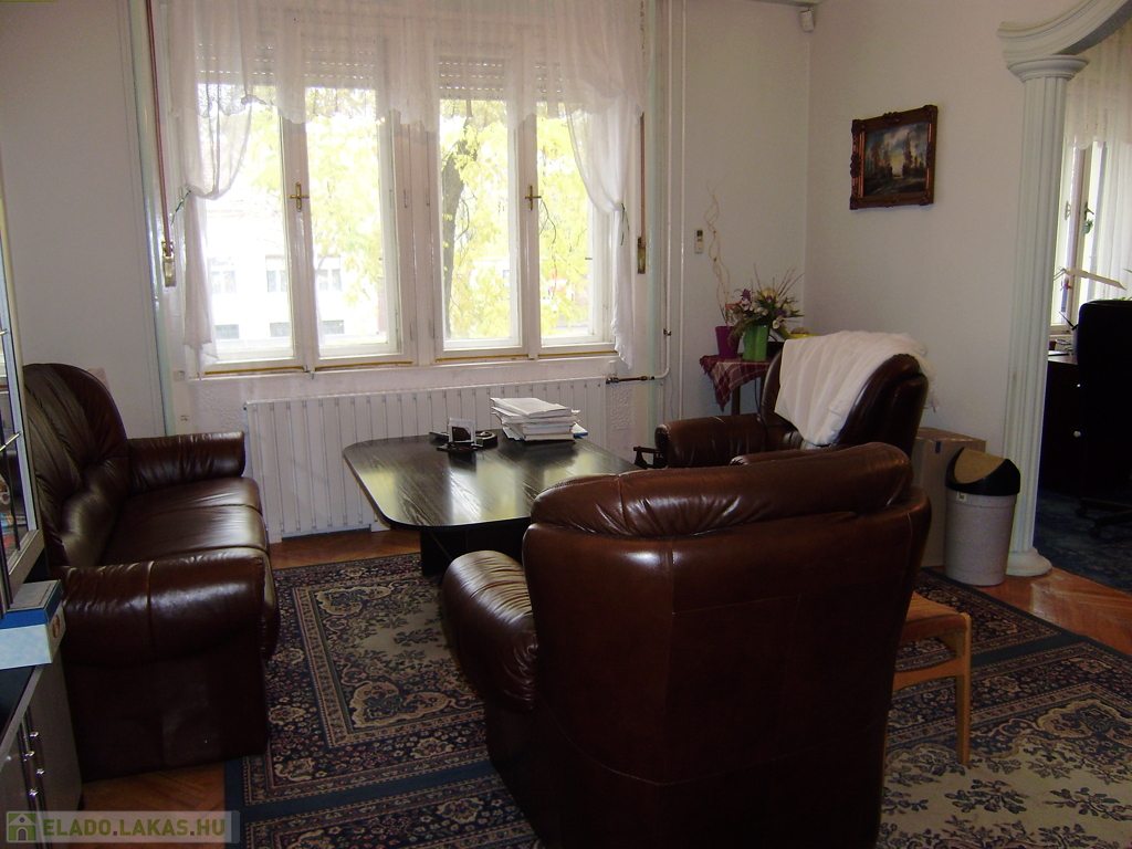 Szegeden a Brüsszeli körúton 100 m2-es, 3 szobás, 1. emeleti, kertkapcsolatos, cirkó fűtésű, klimatizált lakás, 335 m2-es telken (50 %-os használattal), két lakásos házban, tehermentesen, gyors birtokba adási lehetőséggel eladó. Fürdőszobát ki kell alakítani, mert jelenleg irodaként funkcionál. Az ingatlan nemcsak otthonként, de irodának, telephelynek is ideális.