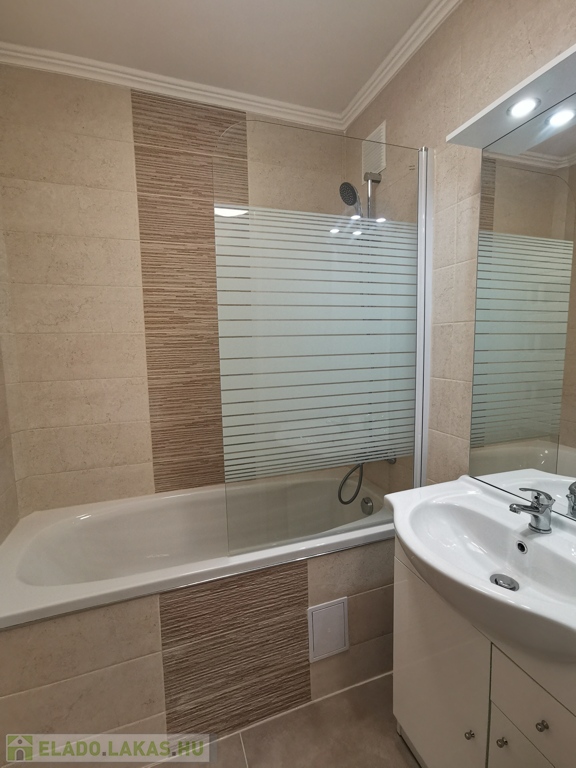 (A képek egy ugyanilyen minőségben, ugyanazokkal az anyagok felhasználásával felújított, más méretű, elrendezésű lakások képei (variációs lehetőségei), jelenleg még a burkolatok, színek, és minden egyéb, alaprajzokon felvázolt lehetőségek szerint módosítható megegyezés alapján, illetve zuhanyzó vagy kád is választható a fürdőszobába igény szerint.)
