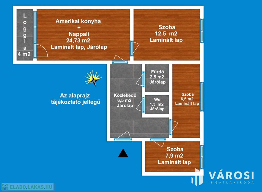 A lakás 1 db amerikai konyhás nappalival, 3 db hálószobával, 1 db fürdőszobával, külön Wc-vel, közlekedővel, előtéttel rendelkezik. Az ingatlan elhelyezkedésre, kialakítása miatt rendkívül sokrétű a felhasználása - akár lakás, vagy befektetési célra -, amely maximálisan kiemeli ezt az ingatlant az átlagos lakások sorából és egyedülálló választássá teszi azt.