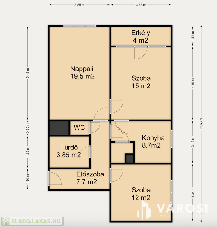 A lakás udvari elhelyezkedésű, rendkívül csendes! 3 szobás elrendezése többféle átalakítási lehetőséget rejt magában.