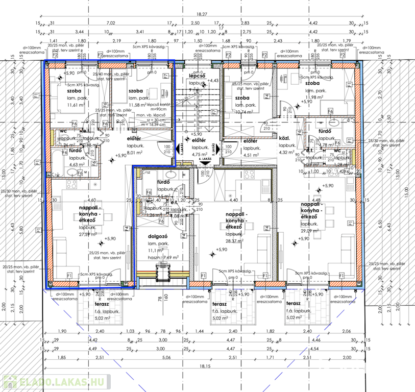 - hűtés: lakásonkénti Fan-coil rendszer előcsövezése