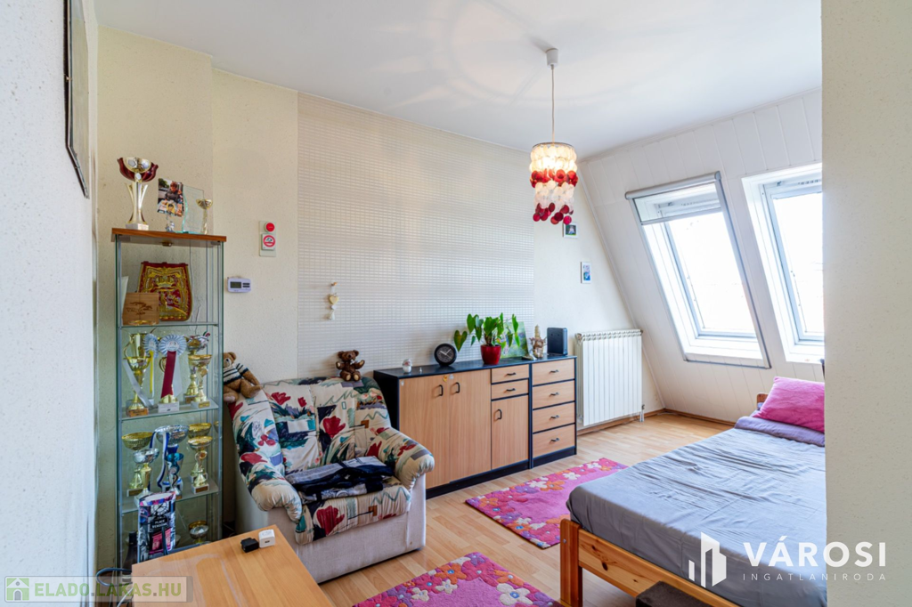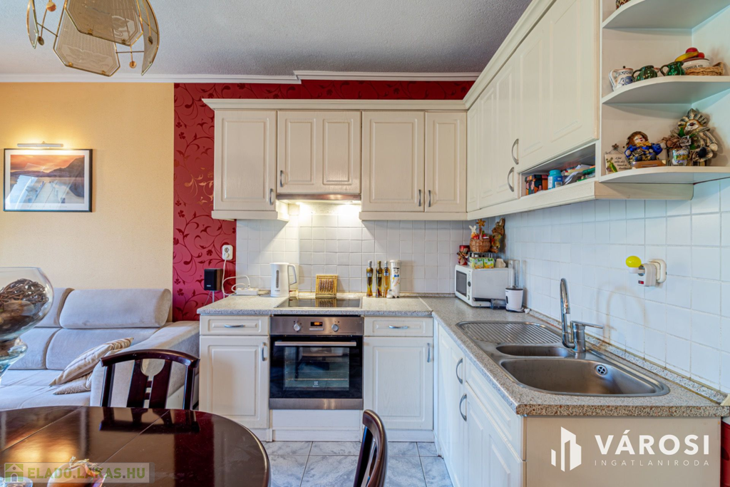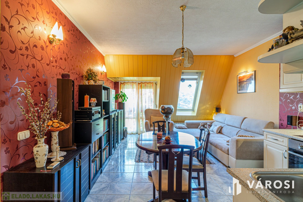 Szeged Móraváros városrészében, a Felhő utcában, eladó, egy 1996 - ban épült negyedik emeleti, normál állapotú 65 nm - es, tégla építésű, amerikai konyha nappal plusz két különálló szobás, dupla franciaerkélyes lakás.