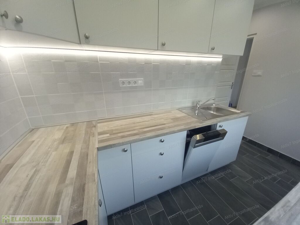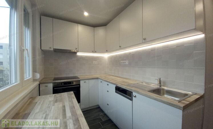 - A lakás új konyhaszekrényt kapott, és újak a háztartási gépek (kerámia főzőlap, elektromos sütő, páraelszívó, mosogatógép), valamennyi „0 km-es” és garanciával rendelkezik;