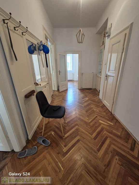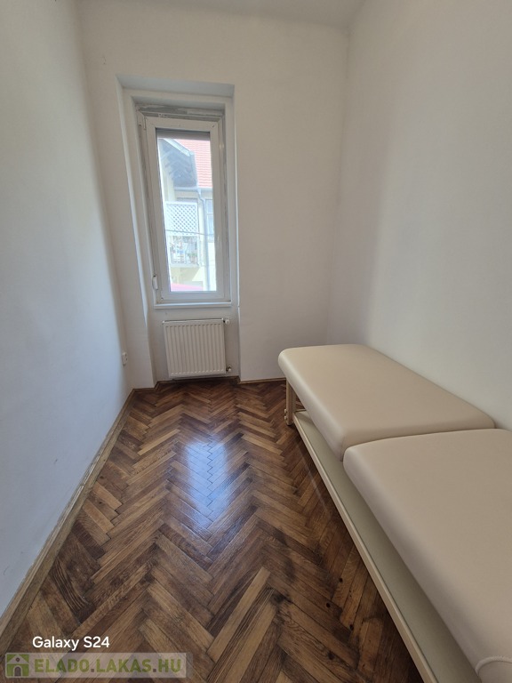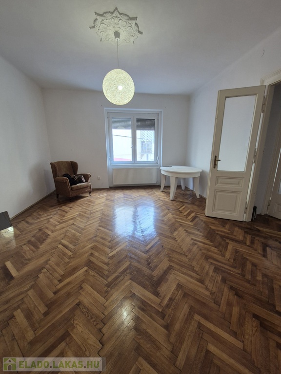 Szeged-Belváros, Kálvin térnél a Madách utcában, 79 m2-es, 2+1 külön bejáratú szobás, magasföldszinti, cirkó fűtésű, szép állapotú téglalakás tehermentesen, azonnal költözhetően eladó. A 9 lakásos társasház kb. 80 éve épült két házként. Egy utcafronti 3 lakásos és egy belső udvari, 3 szintes, 6 lakásos épületként. Az ingatlan a belső házban található, így csendes, pormentesebb. Belmagassága 3 m, falai vastagok. A közelmúltban mindkét ház tetőszerkezetét teljesen felújították. A lakásban 2000-ben felújították a villanyhálózatot, konyhát, fürdőszobát, burkolatokat és a gázhálózatot. Vaillant típusú, zárt égésterű kombi kazán biztosítja a meleg vizet és a fűtést radiátor hőleadókkal, szabályzókkal. 3 éve az összes ablakot dupla üveges műanyagra cserélték. Elosztása jó és alakítható is. Tágas előszobából nyílik minden helyiség: kisszoba, WC, fürdő, konyha (nagy spájzzal) és a két nagyszoba (26 m2, 24 m2). Remek választás lehet, akik a belvárosba vágynak, de irodának, rendelőnek is kiváló. Irányár: 69,9 mFt