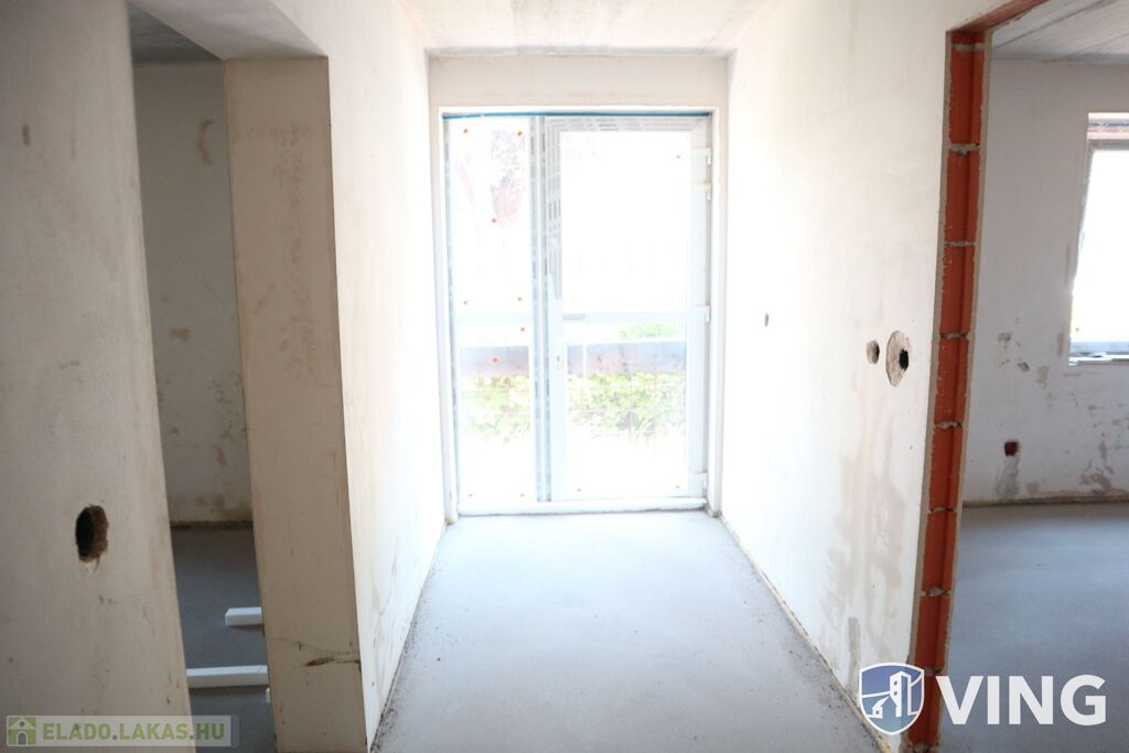 Új építésű 10 lakásos társasházban eladó 64,27 négyzetméteres + 4,6 terasz, előtér+nappali+2 db hálószoba + fürdőszoba + WC elrendezésű, földszinti, kertkapcsolatos lakás, szerkezetkész állapotban.
