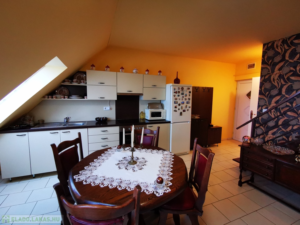 Szeged-Újrókus csendes, mégis kitűnő közlekedésű és ellátottságú részén, a Harmónia lakóparkban, 2004-ben épült, szigetelt, kitűnő állapotú társasház harmadik emeletén, belső két szintes, bruttó 82 / nettó 57 nm-es, amerikai konyhás nappali + három külön bejáratú szobás, spájzos, minőségi anyagok felhasználásával kialakított, egyedi cirkó padlófűtésű, kis rezsijű téglalakás, akár a teljes igényes és ízléses bútorzatával együtt is, tehermentesen eladó. A közös költség 11 eFt. Parkolni a ház előtt lehet, ingyenes. Közeli közlekedési eszközök: 2-es villamos, 5-ös trolibusz, 67Y, 90, 78A, 90F és 90H buszok. Közeli oktatási intézmények: Rókusi krt-i bölcsöde, óvoda és iskola, Arany János Általános Iskola. Azonnal költözhető. Ideális saját otthon és jövedelmező befektetés céljára egyaránt.