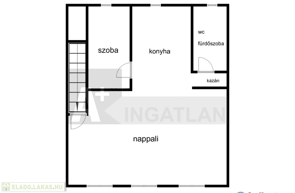 - egy fürdőszoba wc- vel és egy kazán helyiséggel