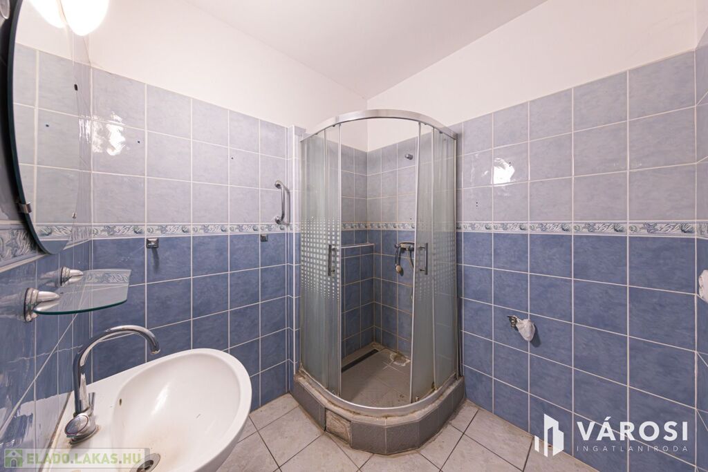 Az ingatlanban található beépített szekrények praktikus tárolási lehetőséget nyújtanak, a fali dekor burkolat pedig igazán egyedi hangulatot kölcsönöz az otthonnak.