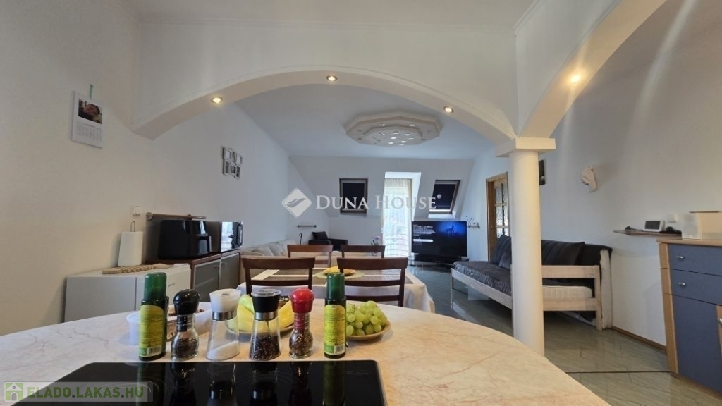 A konyha és az étkező egy légtérben helyezkedik el, így főzés közben sem kell elszakadnia a családtól vagy a vendégektől. Az ingatlant gondos tervezéssel és odafigyeléssel alakították ki, ezáltal minden egyes négyzetmétert maximálisan kihasználva.
