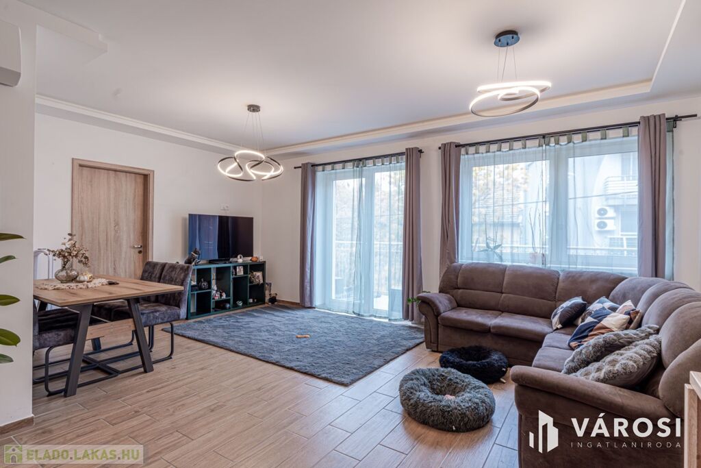 Szeged Felsőváros városrészében, a Rom utcában, eladó, egy 2022 - ben épült ELSŐ emeleti, FIATAL ÚJSZERŰ állapotú 60 nm - es, tégla építésű, amerikai konyhás nappalival, plusz egy szobával, és hatalmas erkéllyel (10 m2) rendelkező lakás. A lakás mellé külön mélygarázsi parkolóhely is megvásárolható.