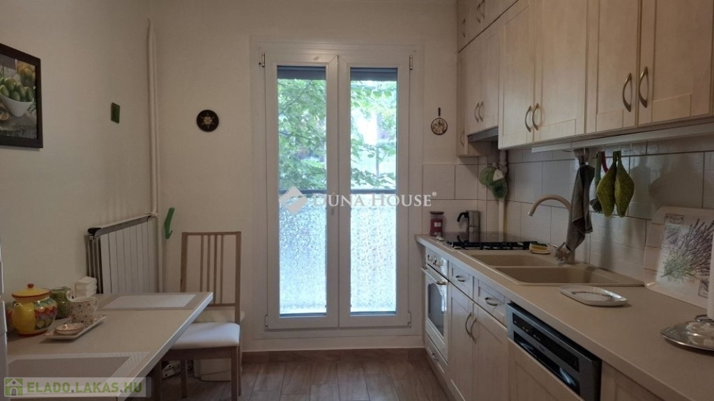 A tágas nappali és a konyha északi fekvésű, amely a csendes, fákkal övezett utcára néz. A megfelelő benapozottságot két franciaerkélyes erkélyajtó biztosítja. A nappali üvegkazettás kialakítású, nemrégiben felújított ajtóval rendelkezik.