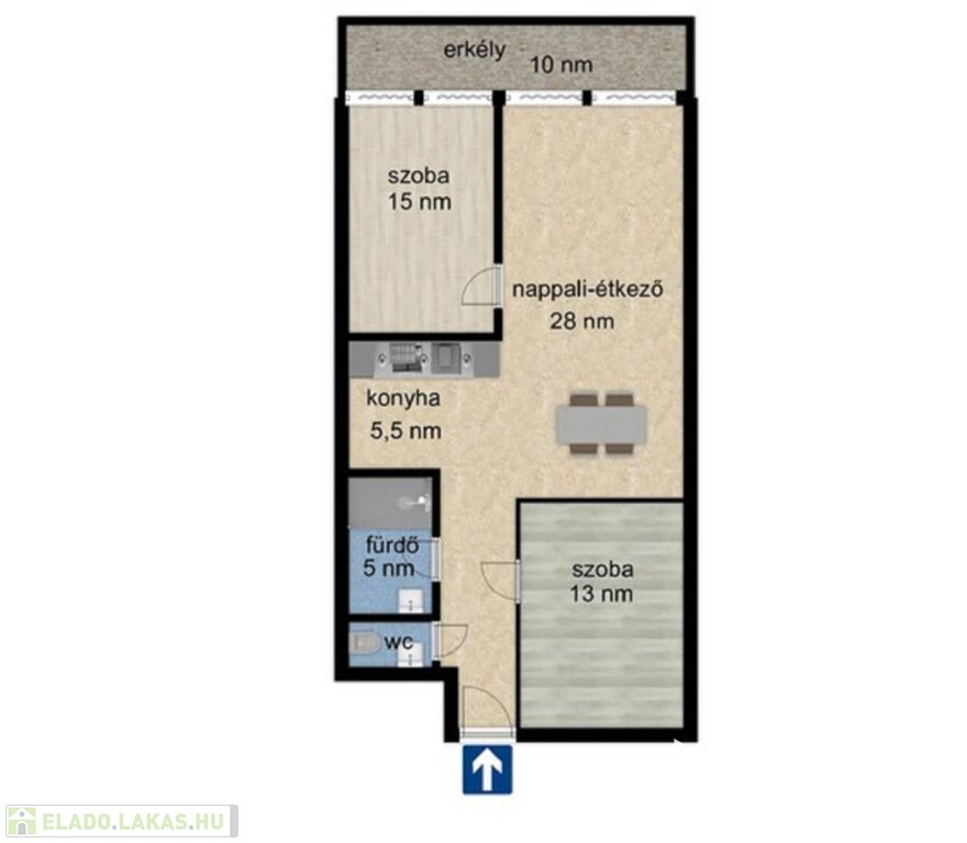 - Nappali.2 hálószoba, fürdő, WC, erkély.