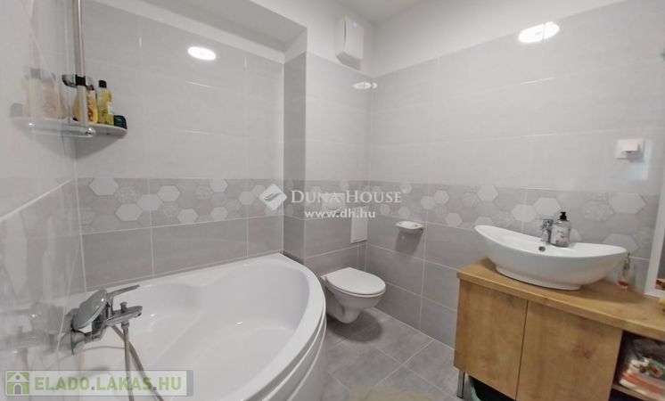 A tágas fürdőkbe sarokkád illetve zuhanykabin került beépítésre, a mellékhelyiség nem szeparált.