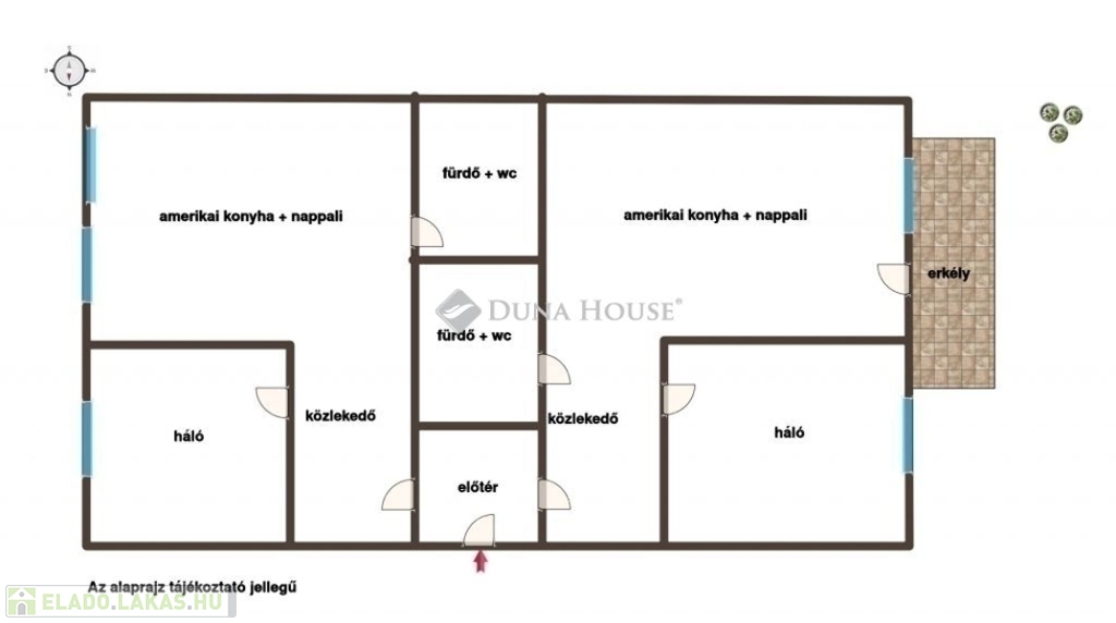 Összesen 2 amerikai konyha + nappali, 2 hálószoba, 2 fürdőszoba