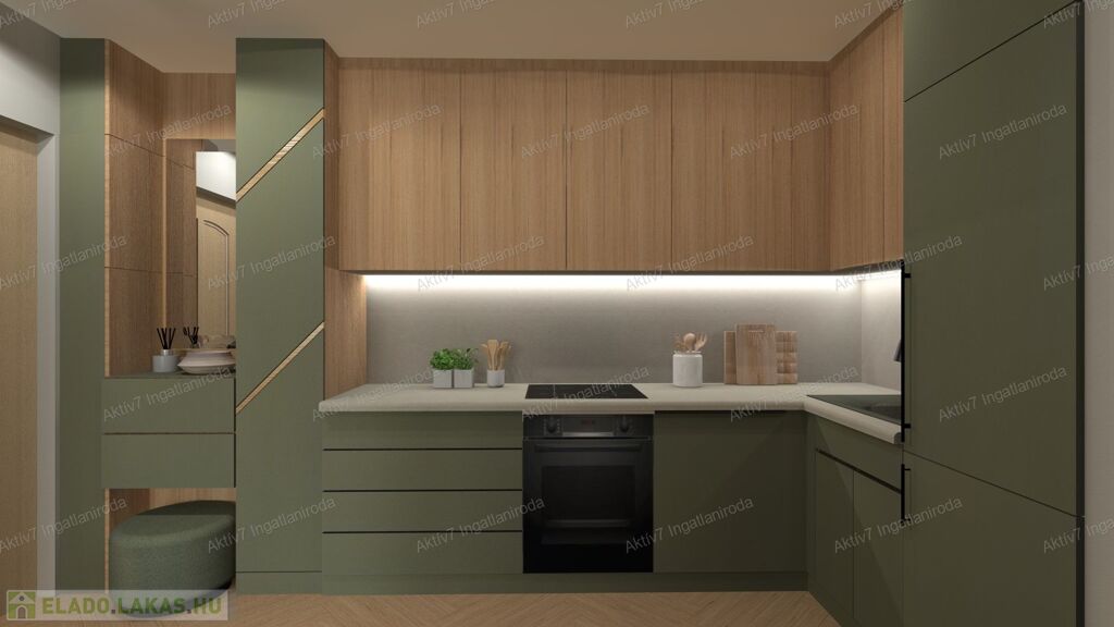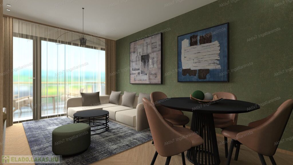 Teljesen készen van, burkolva, festve, elektromos redőnnyel, beltéri ajtókkal, szaniterekkel felszerelve kínáljuk. A vételár a konyhaszekrényt NEM tartalmazza.