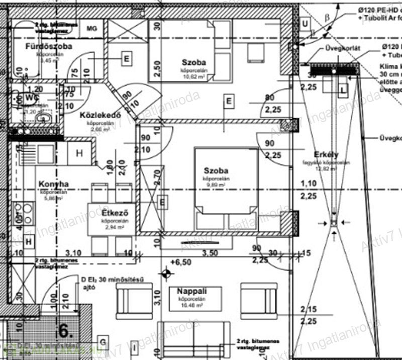 A szóban forgó lakás második emeleti, 53,10 m2 területű, amerikai konyha nappali +2 hálószobás, a hozzá tartozó 12,82 m2 terasszal (a fotók között található alaprajz szerint).