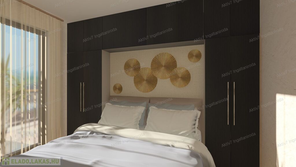 Teljesen készen van, burkolva, festve, elektromos redőnnyel, beltéri ajtókkal, szaniterekkel felszerelve kínáljuk. A vételár a konyhaszekrényt NEM tartalmazza.