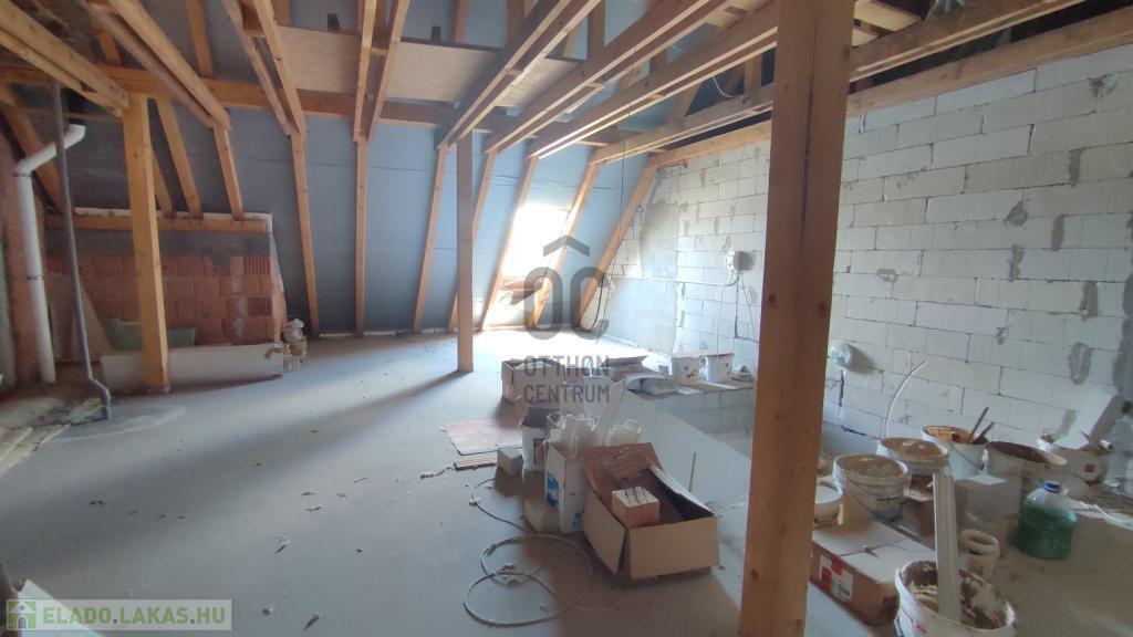 A házban a következő helyiségek találhatóak: a földszinten egy tágas, világos nappali, konyha, zuhanyzós fürdőszoba-mellékhelyiség. Az emeleten 3 élhető méretű szoba, erkély, fürdőszoba-mellékhelyiség, ami nagy beépített káddal rendelkezik. A 40m2 (bruttó 60m2) hasznos területű tetőtéri rész, további beépítési lehetőségek biztosít, de tárolási célra is használható.