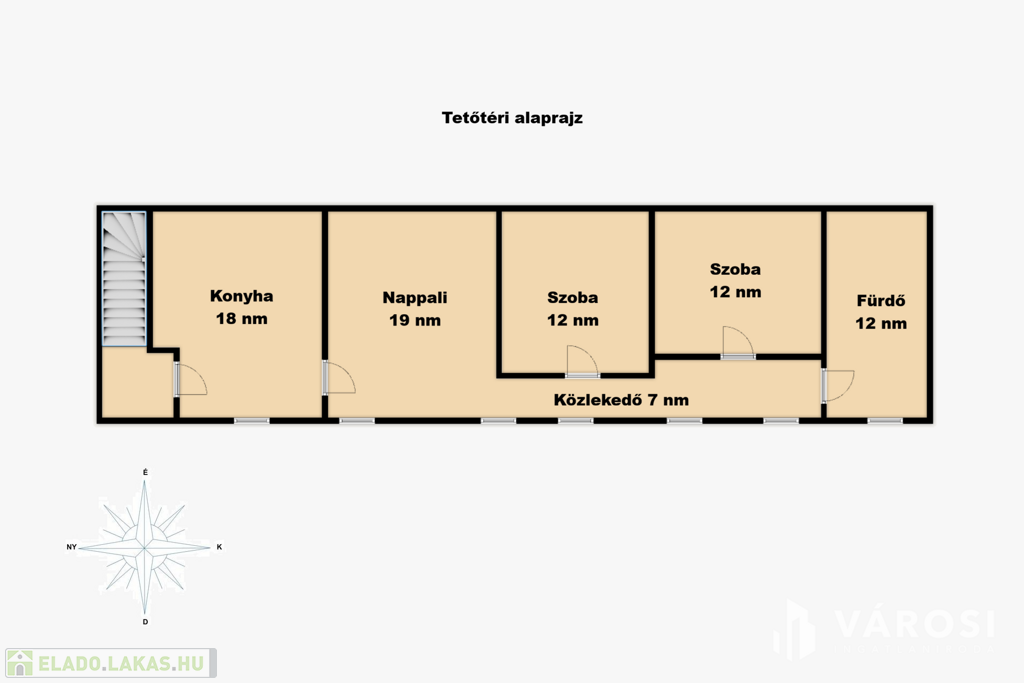 A földszinten nappali, konyha, hálószoba, fürdőszoba, háztartási helyiség és tároló (lépcsőház) található. Az emeleten pedig nappali, 2 hálószoba, konyha és fürdőszoba helyezkedik el.