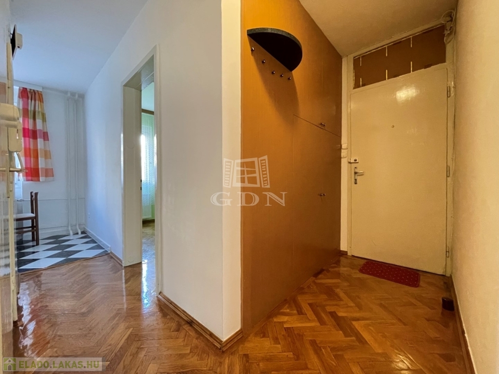 A lakás 44 nm-es, műanyag ablakai zöldövezetre néznek amin alumínium redőny és szúnyogháló található. A lépcsőház teljes egészében átesett a panelprogramon, (szigetelés, ablakcsere, radiátorok cseréje). A lakásban a villanyvezeték cserélye megtörtént.