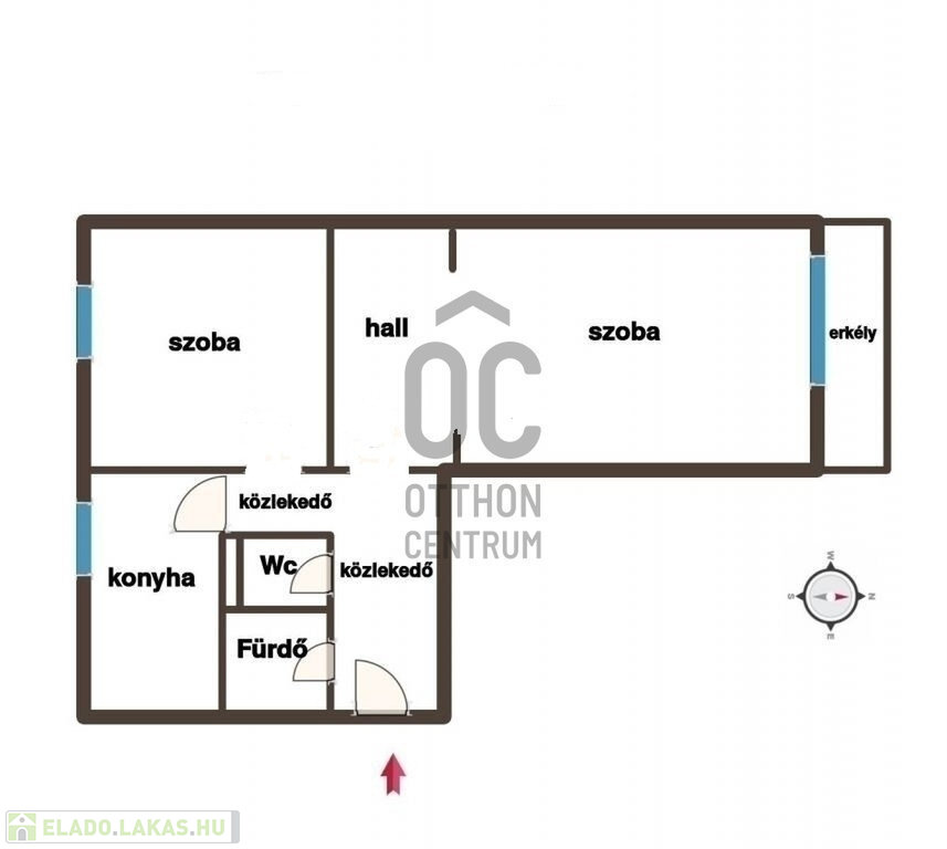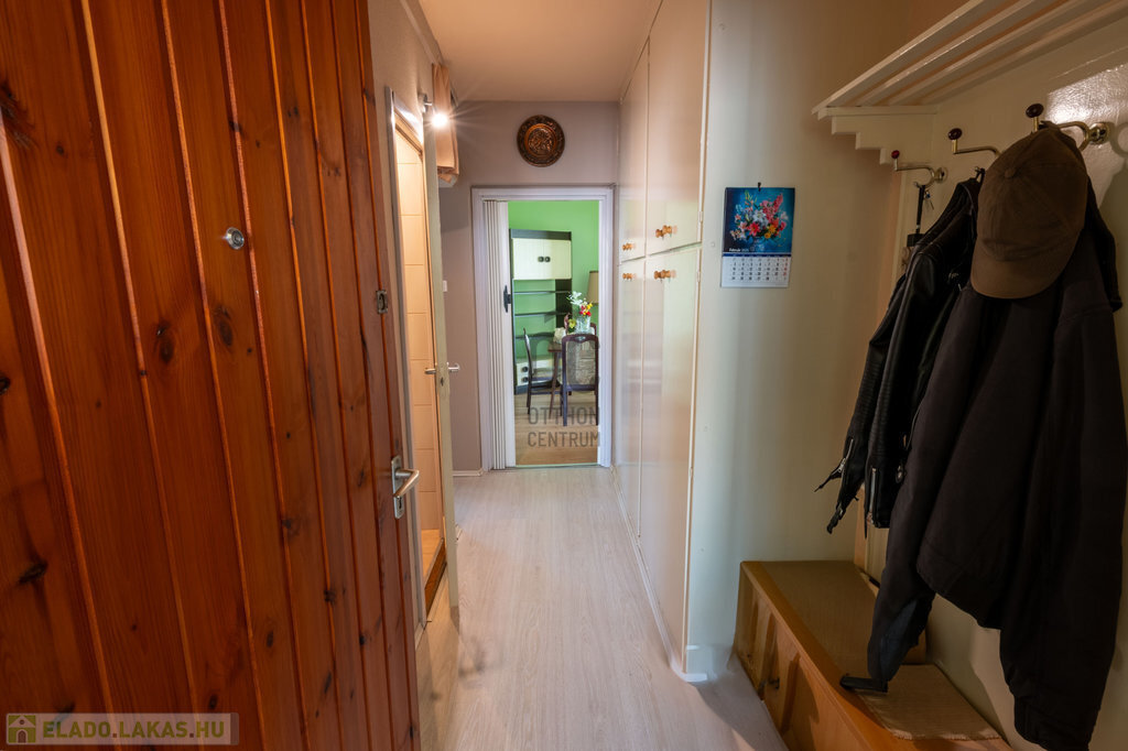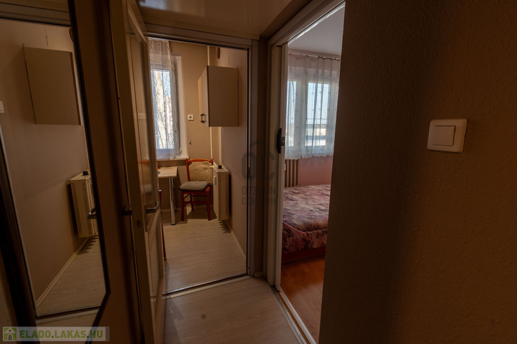 A lakásnak kiváló elosztása van, két külön nyíló világos szobát, valamint egy tágas hallt foglal magában, mely akár étkezőnek is alkalmas lehet.