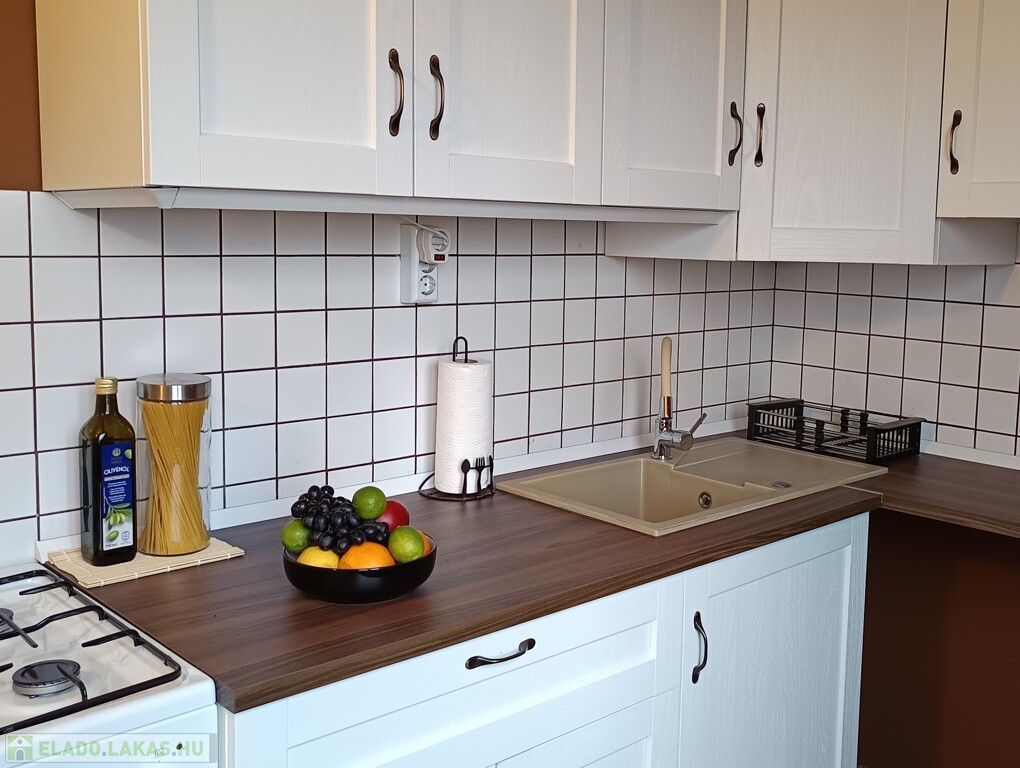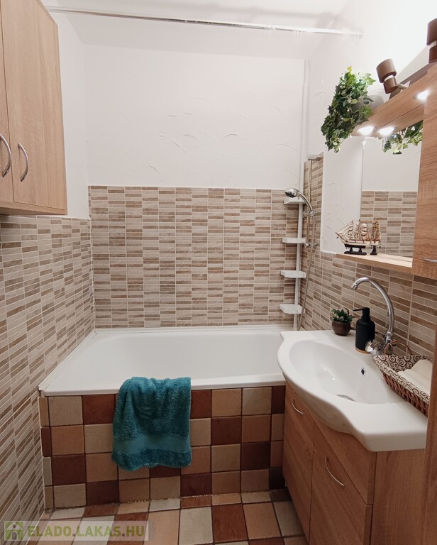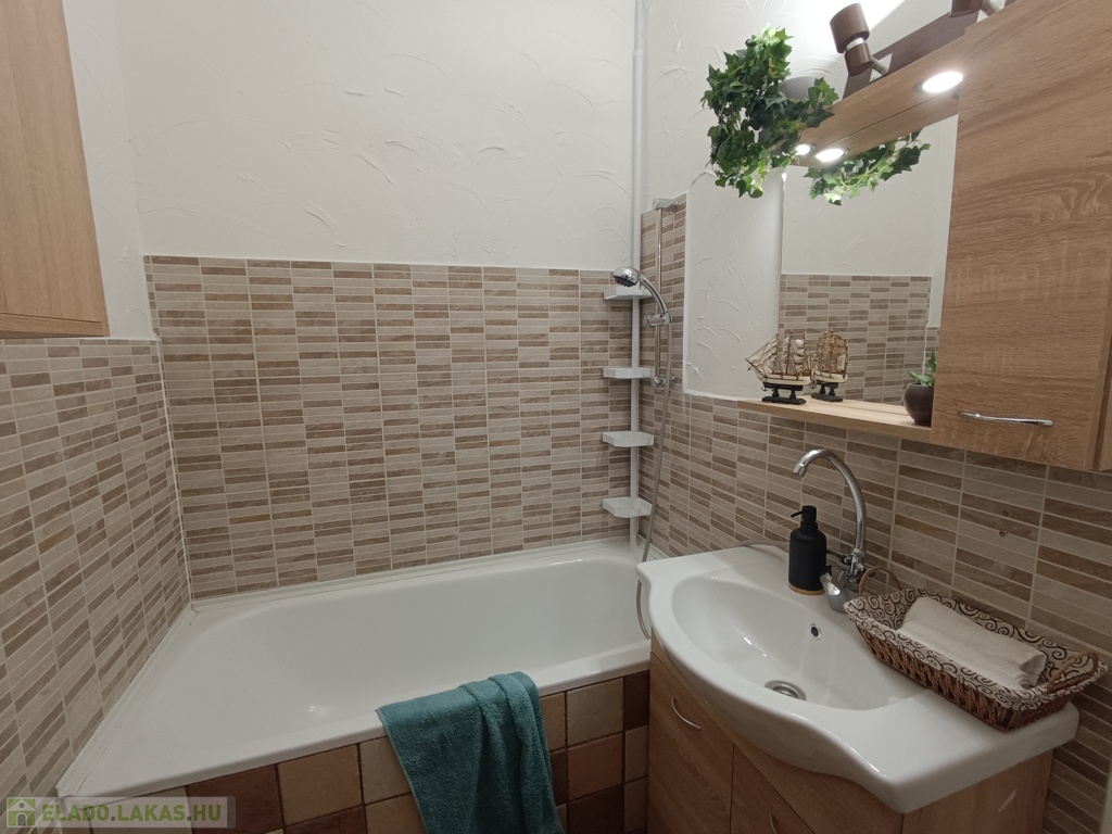 -A fürdőszobában új a bútor, a mosdókagyló és a csap, valamint csőradiátor lett felszerelve. A mosógép kivezetés a konyhába került