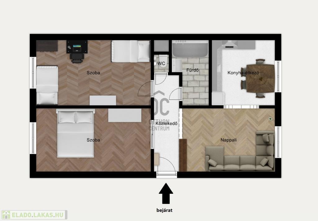 - Nappali és két külön nyíló hálószoba