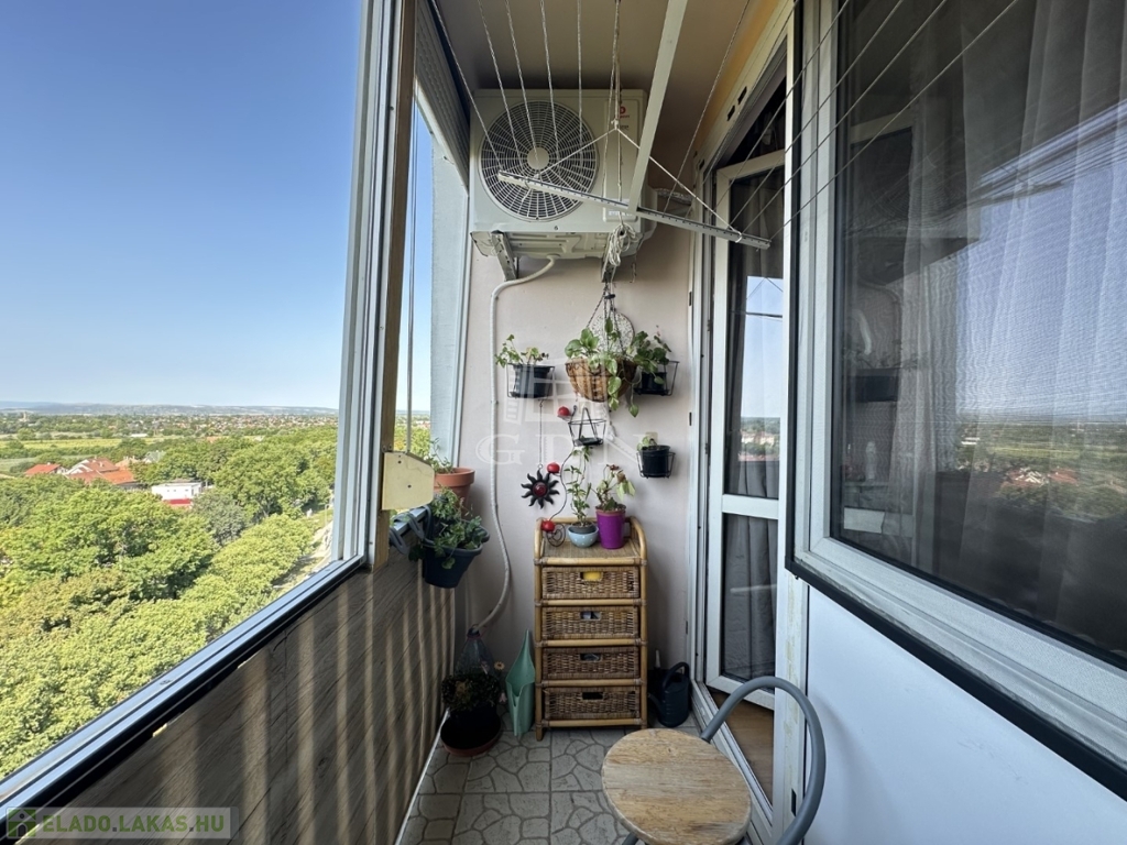 L-004553. Szedreskerti Lakónegyedben (Palotai út), akadálymentesített, 10 emeletes, panel épületben, 10. emeleti (panelprogramon átesett), teljeskörűen, a mostani kornak megfelelően felújított és átalakított, 52 nm nagyságú, nappali + 2 szobás, erkélyes, klímás lakás eladó.