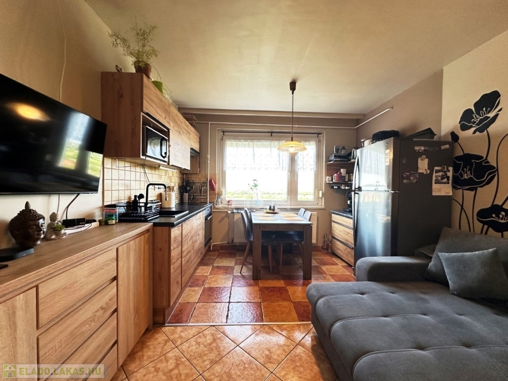 A tulajdonos burkolatokat, konyhabútort, szanitereket és a fűtőtesteket is kicserélte. A szobák falai festettek, járólap van a közlekedőben és vizes helyiségekben, laminált padló a szobákban.