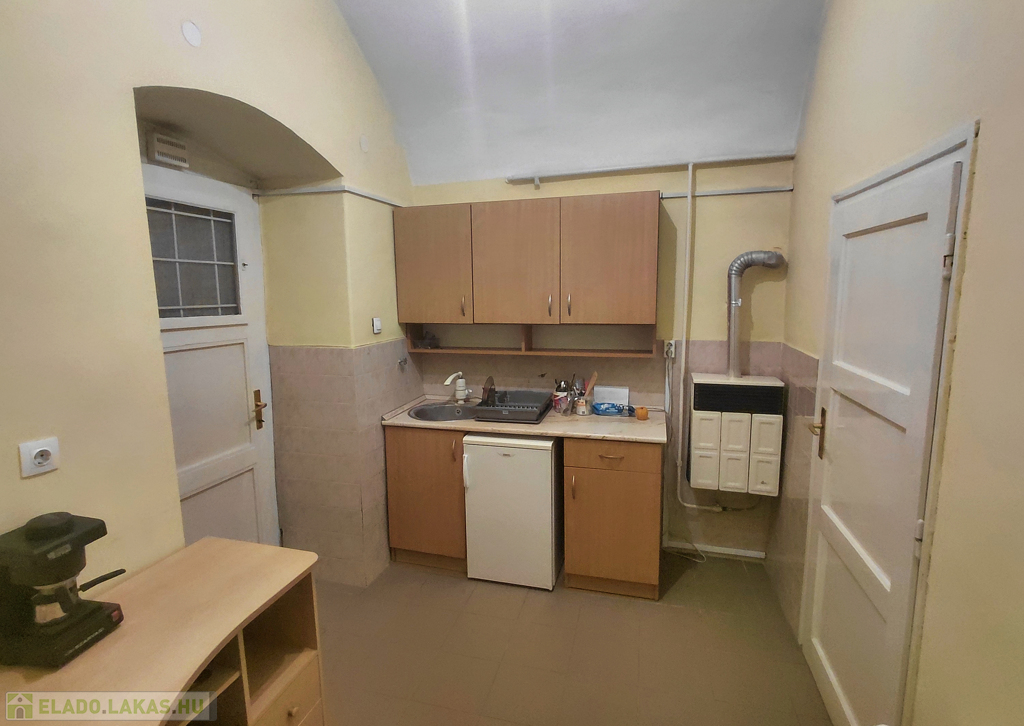 A téglaépítésű, két szobás ingatlan egyedi belső elrendezésének köszönhetően sajátos hangulatot teremt. A széles előszobából egy szoba nyílik, innen juthatunk tovább a másik szobába, majd a belső konyhába. Az egymásból nyíló terek elrendezése nyugodt, zavartalan atmoszférát teremt, legyen szó otthonról, irodáról vagy akár rendelőről.