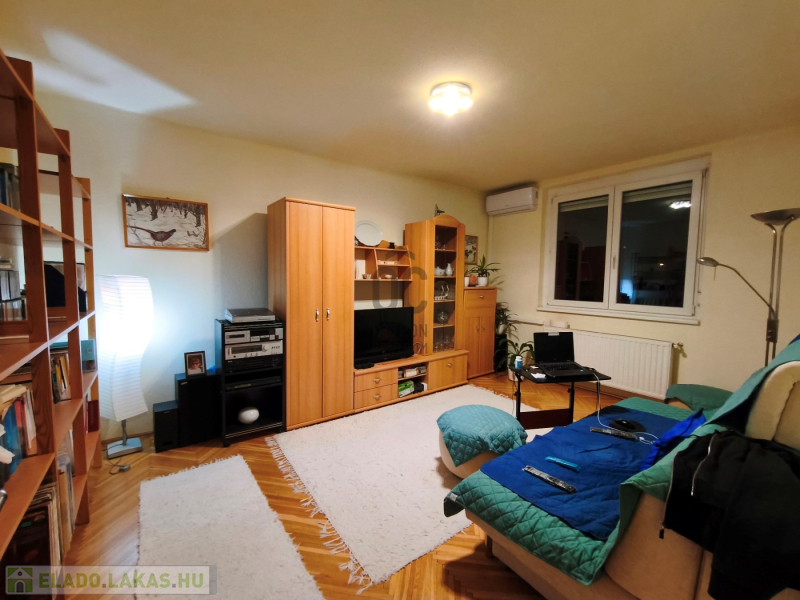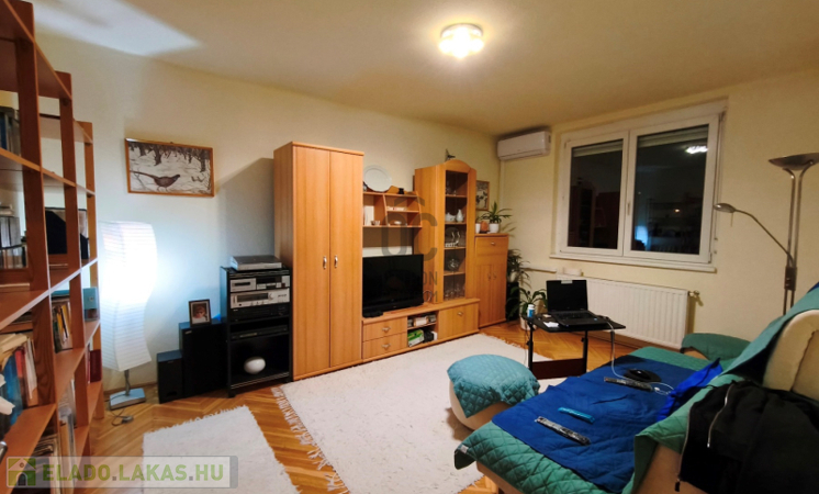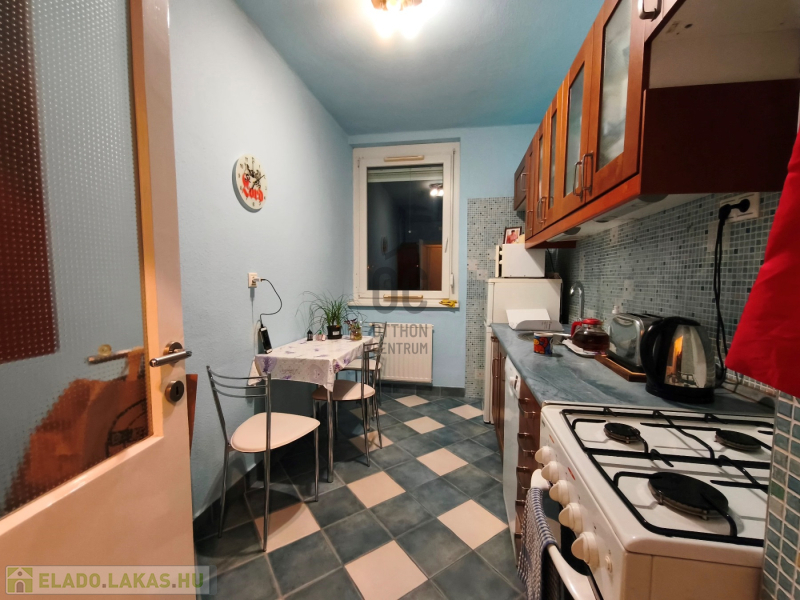 A lakás jó állapotú, esztétikailag és műszakilag felújított, a villanyvezetékek és víz,- szennyvízvezetékek cserélve lettek, a konyha és a fürdőszoba is teljeskörű felújításra került. Négy éve új biztonsági bejárati ajtó, valamint egy hűtő-fűtő klíma lett felszerelve, hogy a meleg nyári napokon is kellemes legyen a lakásban a hőmérséklet! Az ablakok redőnnyel és szúnyoghálóval is felszereltek. A meleg vizet egy kb. 15 éves átfolyós Ariston gázkazán szolgáltatja. A folyosóról minden helyiség külön megközelíthető. A szobákban fa parketta a többi helyiségben járólap burkolat található. A lakáshoz saját tároló tartozik a pincében. Az épület részt vett a teljes panelprogramban, műanyag nyílászárókkal ellátott. Közös költség: 13.200,-Ft.