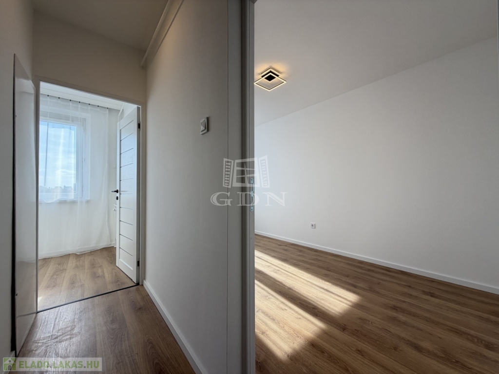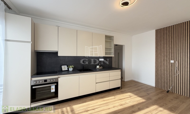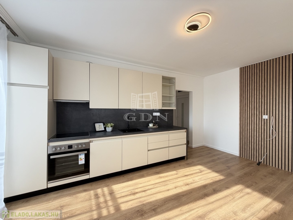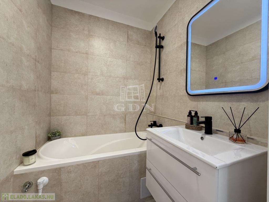 Az átalakítást követően, a konyha átkerült a nappaliba, így, 2 db külön nyíló szoba került kialakításra. A lakásban az összes burkolat cseréje megtörtént. A beltéri ajtók is újak, modern letisztultak. A fürdő is teljesen megújult, RAVAK kád került beépítésre.