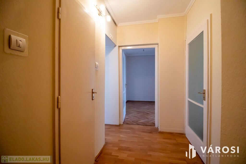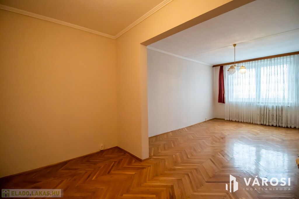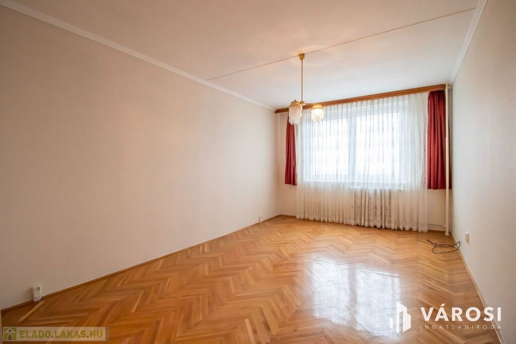 Ez az 7. emeleti, liftes házban levő, nappali + 2 szobás panellakás, a történelmi belvárostól 200 méterre helyezkedik el. A nappali és a beépített erkély a kisszobával délután közepéig fürdik a napfényben. A harmadik szoba és a konyha pedig egy csendes parkolóra néz. A három szoba mindenkinek biztosítja a külön birodalom lehetőségét.