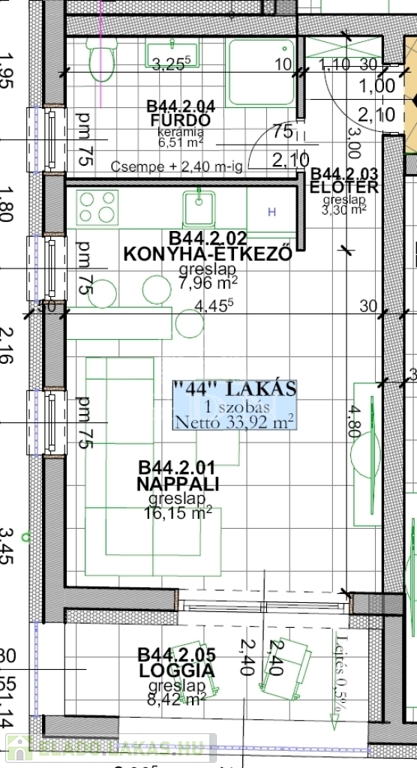 B44. lakás: 33,92nm