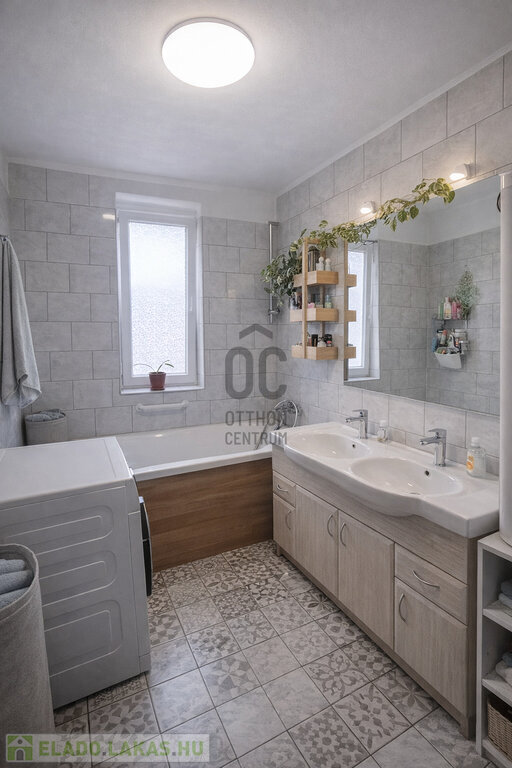 A praktikus elrendezés (nappali + 2 hálószoba, külön WC, tágas fürdő dupla mosdóval) kényelmes, jól élhető otthont biztosít.