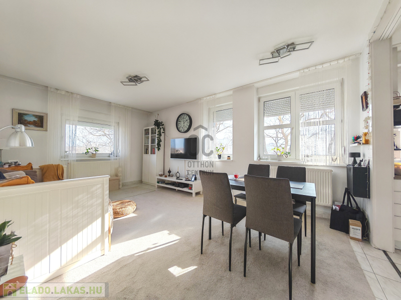 Belváros közelében, rendezett, négyszintes társasház harmadik emeletén kínálunk megvételre egy 63 m²-es, amerikai konyhás nappali + 2 hálószobás, délkeleti tájolású, egyedi cirkófűtéses, kedvező fenntartású téglalakást.