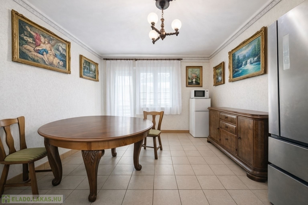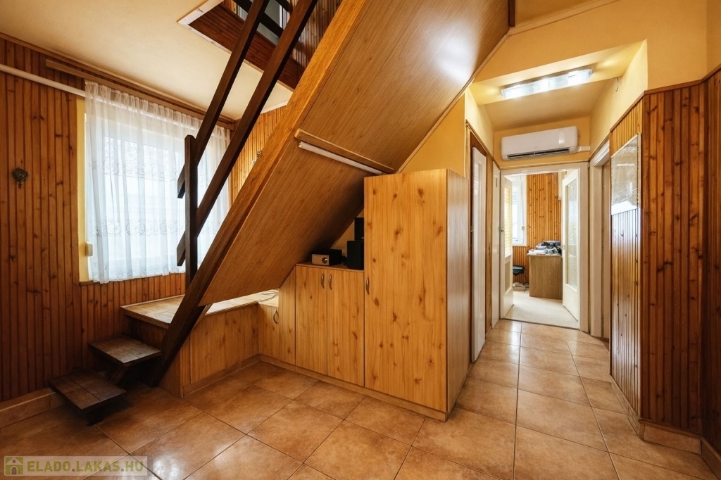 - Földszint: tágas előszoba, konyha, nappali–étkező, kamra, fürdőszoba WC-vel, valamint két világos szoba