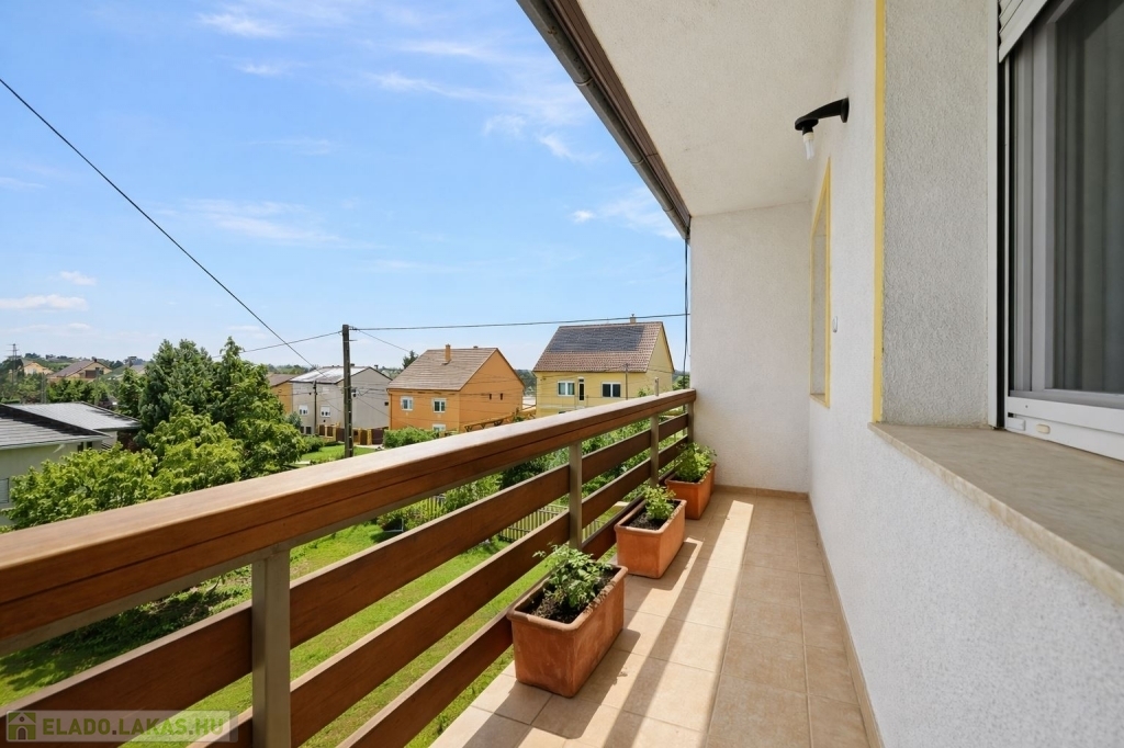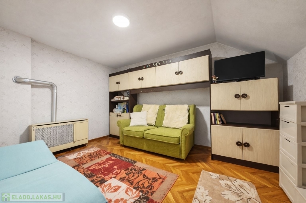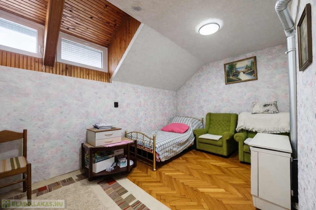 - Emelet: közlekedőből nyíló két különálló szoba, egy második fürdőszoba WC-vel, illetve egy jelenleg beépítetlen padlástér