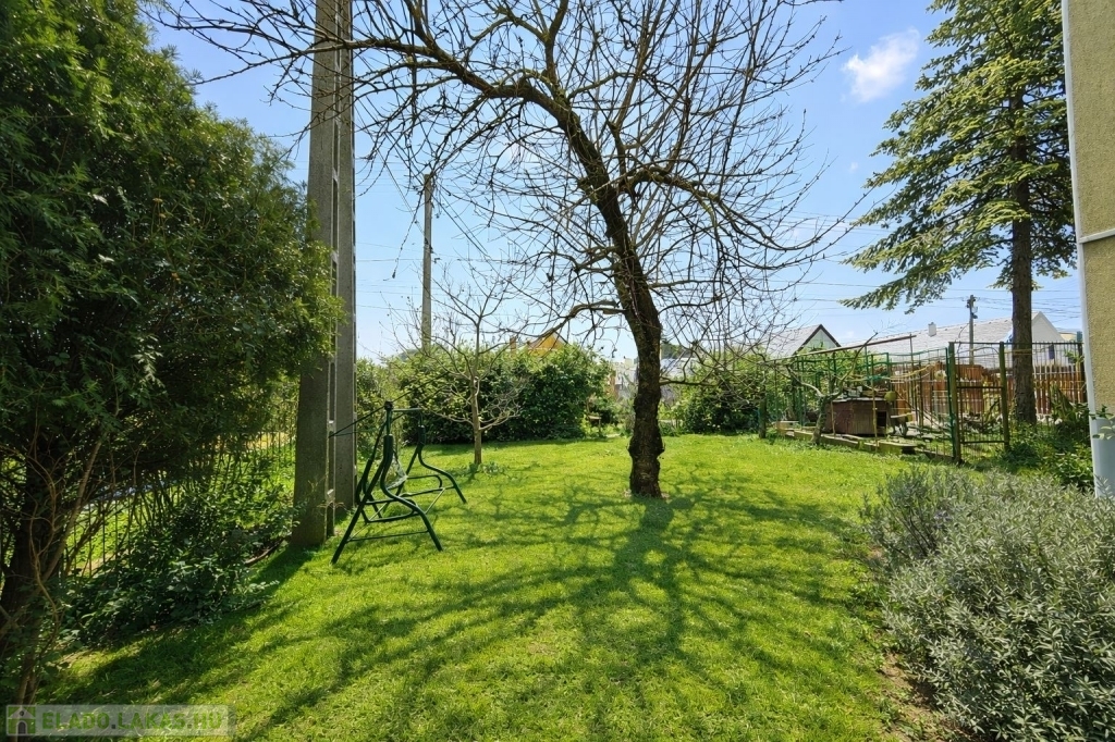 Az ingatlanhoz tartozik egy kb. 200 m²-es, teljesen elkerített, saját kert, amely kiválóan alkalmas pihenésre, grillezésre vagy gyermekek számára.