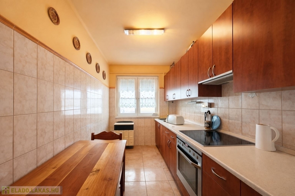 Nyugodt, zöldövezeti lakókörnyezet, játszótérrel, barátságos szomszédsággal.