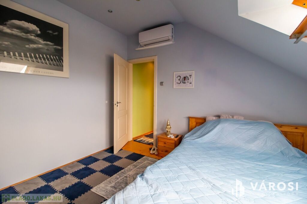 A bruttó 108, nettó 96 négyzetméteres lakás, egy négyemeletes társasház tetejének beépítésével már 32 éve elkészült, de azóta sem kopott a fénye. Minden szép állapotú és ha ez valakinek így tetszik, akkor máris elfelejtheti a felújításokkal járó kellemetlenségeket és költségeket! Egy festés és máris költözhető. Lift sajnos nincs, de nagyon egészséges naponta párszor megmászni az emeleteket.