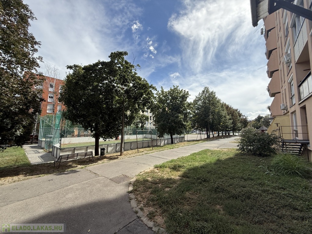 A környék kultúrált, parkosított, nagy, árnyékot adó fákkal, valamint nem messze van egy új sportpálya és játszótér. A közelben vannak a nagyobb boltok, közvetlen közelében van a buszmegálló, parkolni pedig közvetlenül a ház előtt lehet.