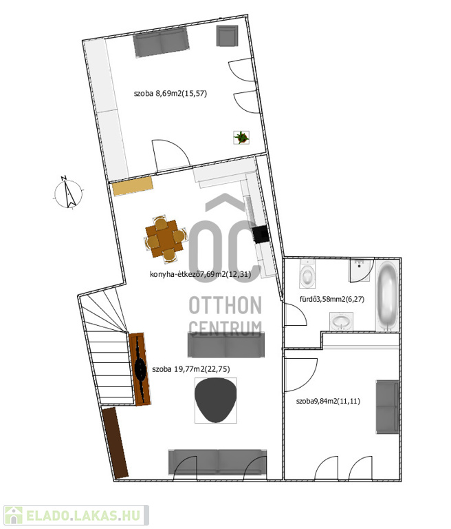 - A nappali a konyhával és az ebédlővel egy légtérben helyezkedik el