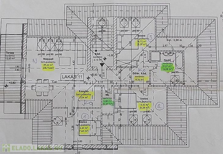 • Hasznos alapterület: 75 nm. (bruttó alapterület: 115nm). A tetőri lakás parapet magassága emelve van. A helyiségek kényelmesen vannak kialakítva. Elosztása: 3 hálószoba+ nappali + 2 fürdőszoba.