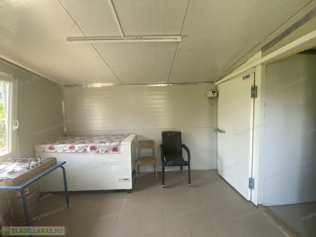 A telek sarkában egy hűtőkamrás nyárikonyha, ahol a kertben termett gyümölcsök télire eltehetők, jó helye van itt a savanyúságoknak, vagy akár egy jó kis disznóvágásnak is.