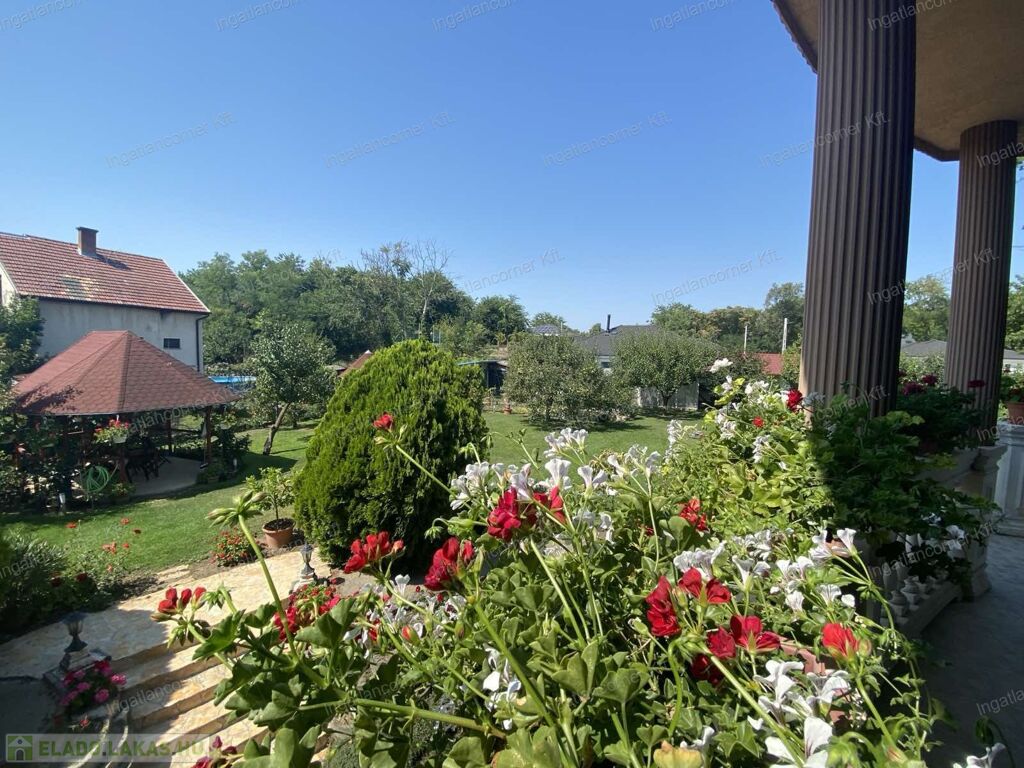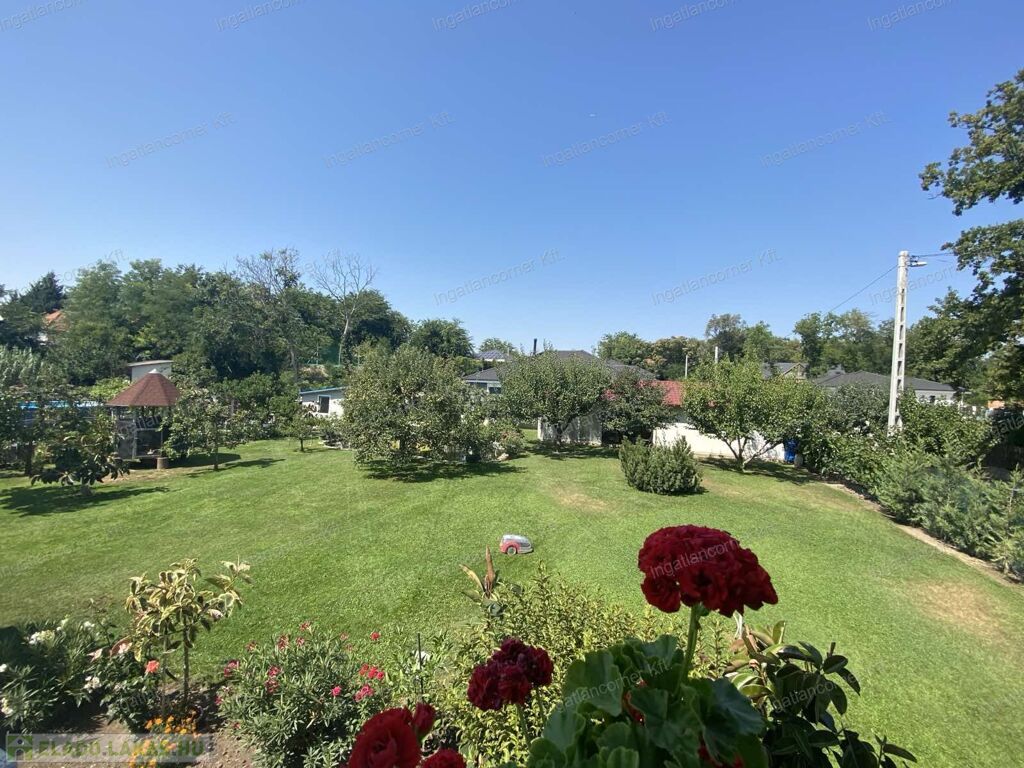 A hatalmas udvar gyönyörűen parkosított, termő gyümölcsfákkal beültetett. ( sárgabarack, őszibarack, szilva, szőlő stb)egy nagy kerti tó ékesíti a hátsó részt, tele szebbnél szebb halakkal.