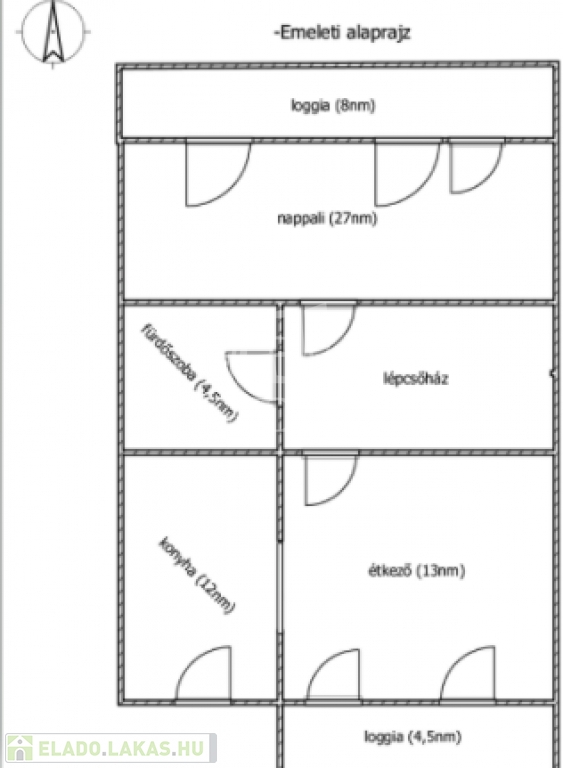 - nappali nagy ablakokkal, nyugati fekvésű loggia kapcsolattal,