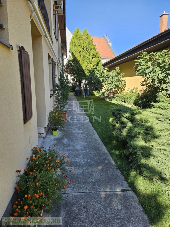 Az épület körbejárható. A lakások szépen gondozott saját előkerttel, közös oldalkerttel, fúrt kútról működő locsoló hálózattal, valamint több autó számára biztosított beállási lehetőséggel rendelkeznek.