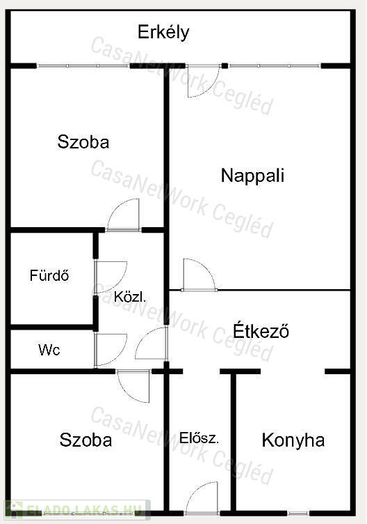 - Térelosztás: 3 szoba, konyha-étkezővel, közlekedő, folyosó, fürdőszoba, külön WC, ERKÉLY !